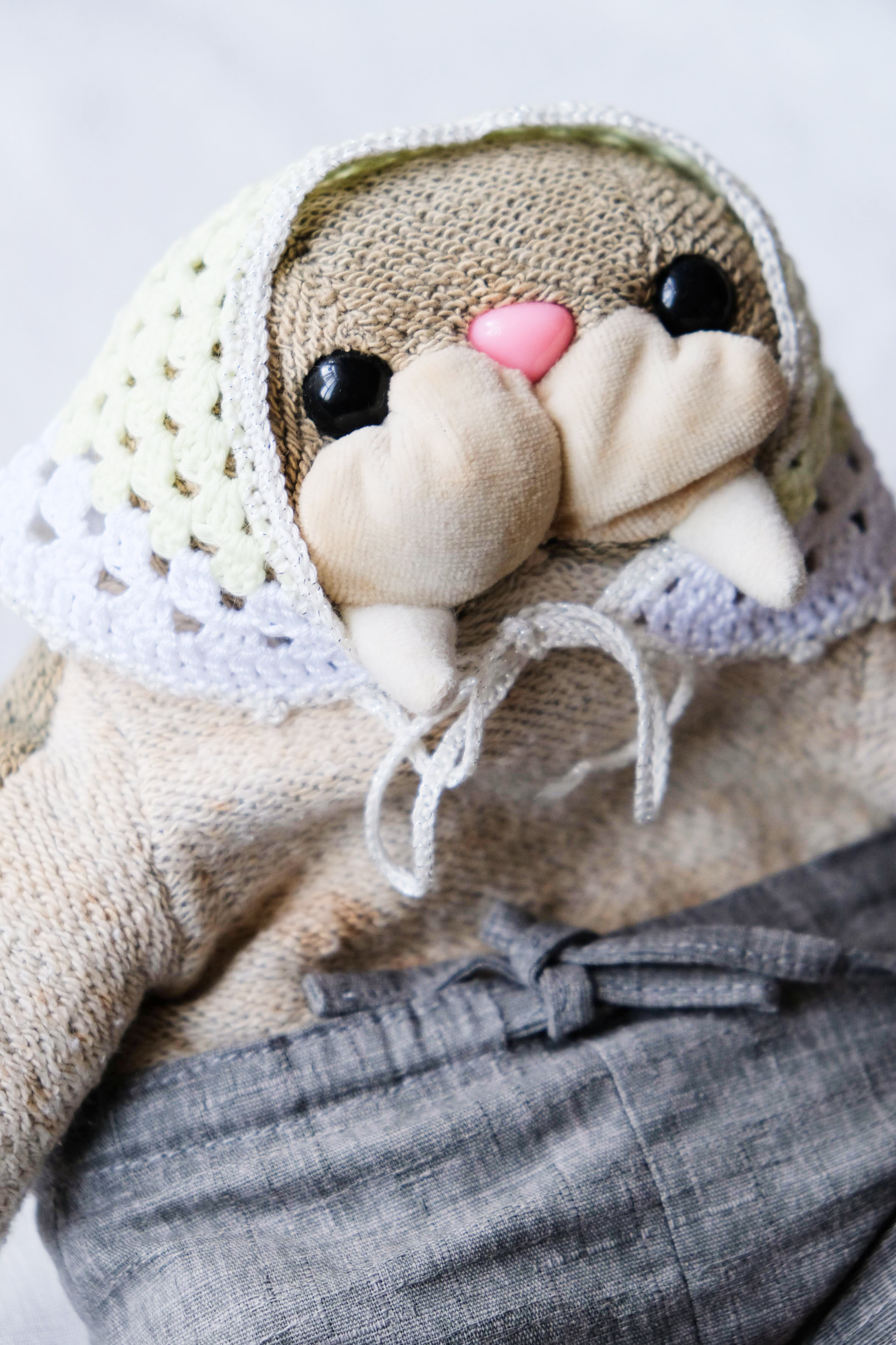 コットン糸を使用しているので肌触りが優しく、柔らかい雰囲気がお好きなぬいぐるみさんにオススメです。