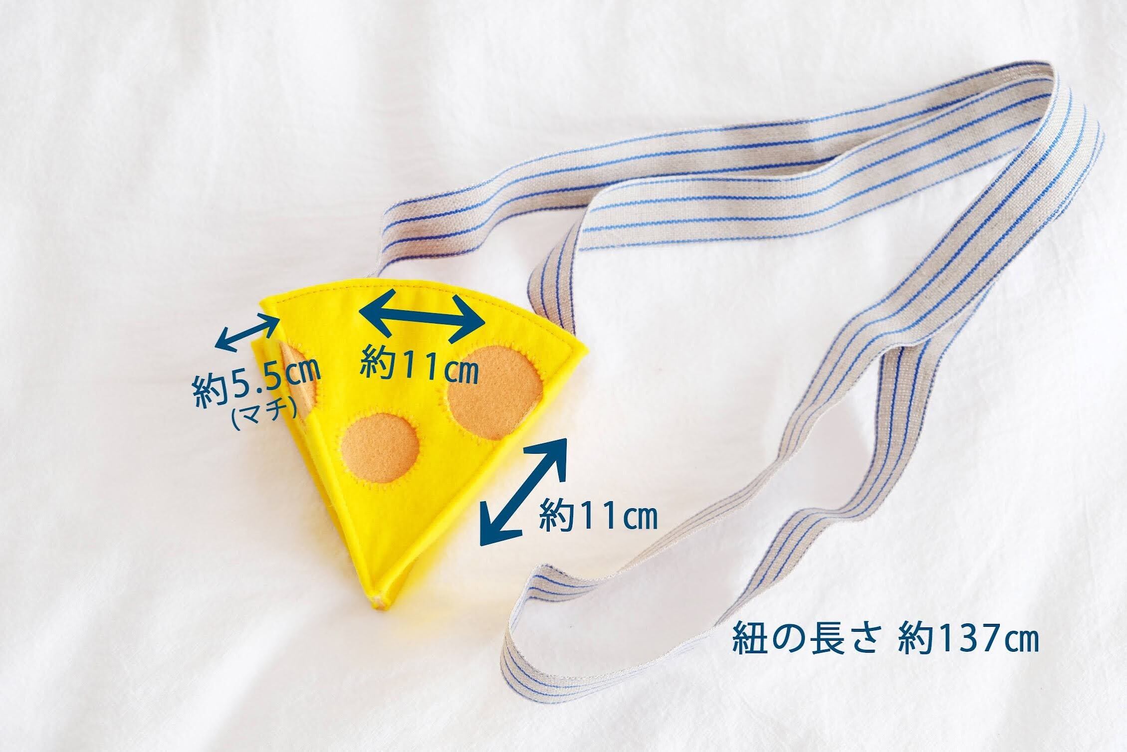 縦と横 約11センチ マチ 約5.5センチ 紐の長さ 約137センチ