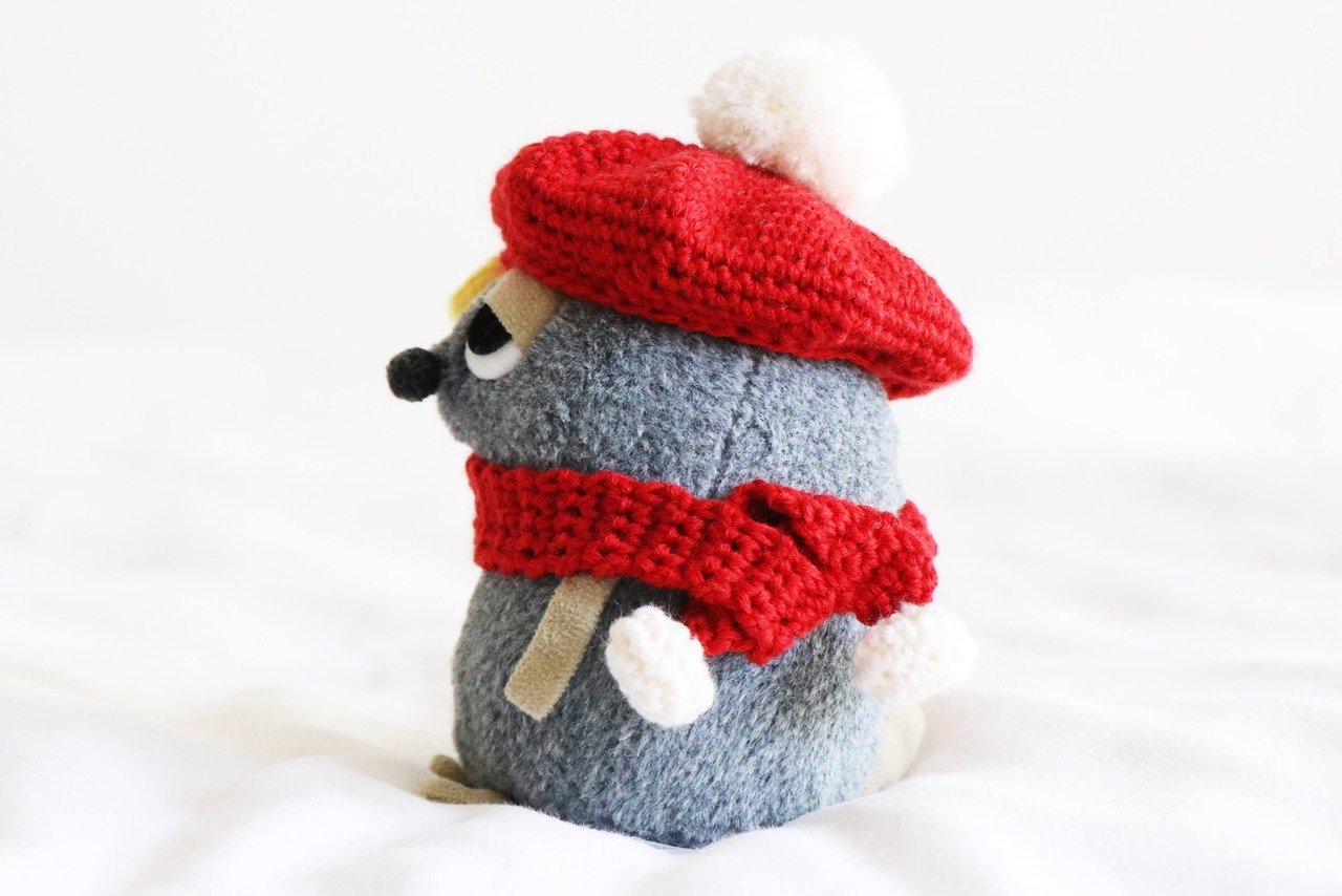 〝Tailor NEZU〟の定番アイテムでもあるポンポン付のベレー帽は、どんなぬいぐるみさんにも合わせやすいアイテムです。